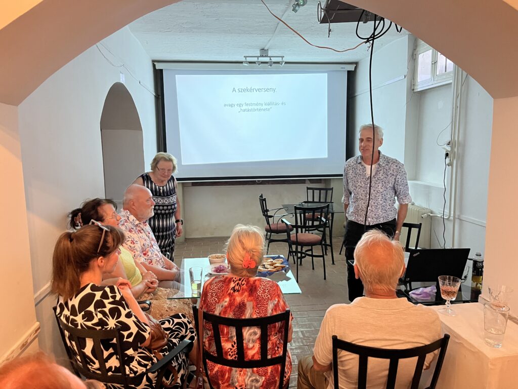 A Vigyázó Művészeti Szalon rendelvénysorozatában 2025.06.26.-án Lisányi Endre képzőművész, esztéta vetített képes előadását láthattuk. Címe: „Szekérverseny, avagy egy Wagner-festmény kiállítástörténete”